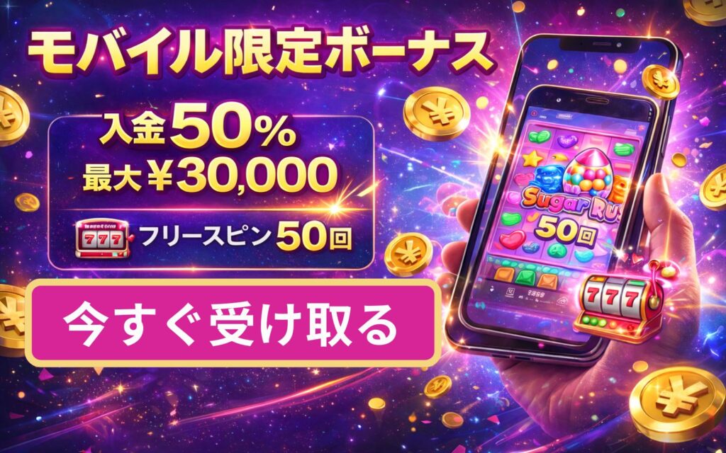 スマートフォンでプレイする日本人向けに、モバイル限定ボーナスを用意しています。
